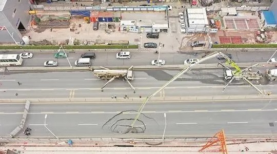 廣州中山大道珠村路發(fā)生地陷!現(xiàn)場(chǎng)已經(jīng)使用圍蔽進(jìn)行施工